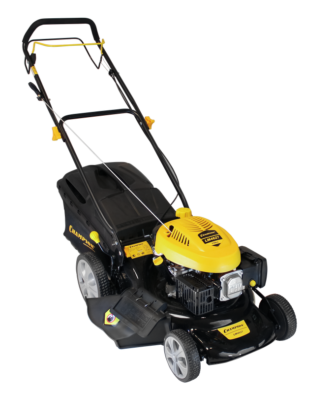 CHAMPION LM4627 – бензиновая самоходная газонокосилка с комбинированным травосборником, подходит для кошения травы на небольших газонах. Мощность модели – 2,6 кВт. Для удобства пользователя агрегат оборудован мягкой рукояткой из вспененного каучука. Выброс травы выполняется в сторону или в травосборник. Модель имеет 5 позиций для регулировки высоты скоса. Четыре пластиковых ударопрочных колеса на 2-х подшипниках на каждом (диаметр - передние 180 мм., задние 250 мм.) делают ход мягким и маневренным.